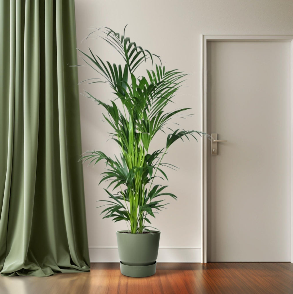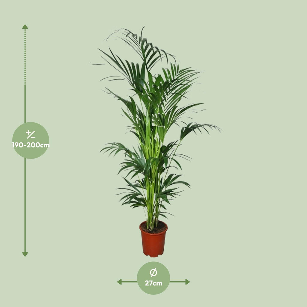 Die Kentiapalme (Howea forsteriana) zählt zu den edelsten Palmenarten für den Innenbereich. Mit ihrer eleganten Wuchsform, den fiederförmigen, dunkelgrünen Wedeln und einer Höhe von ca. 200 cm bringt sie tropisches Flair in jedes Zuhause oder Büro. Die Topfgröße von 27 cm sorgt für gute Standfestigkeit und optimale Entwicklung der Wurzeln.